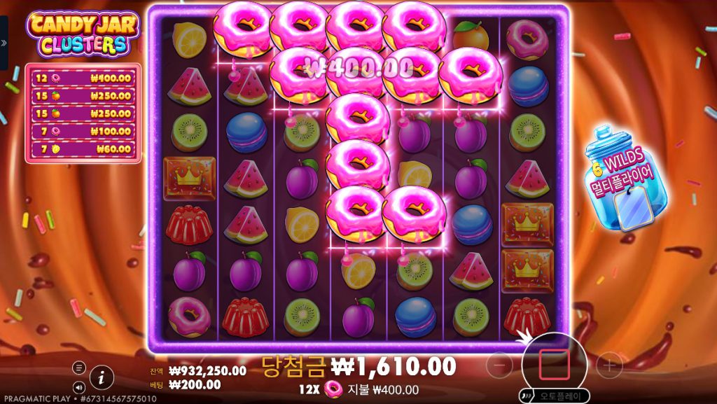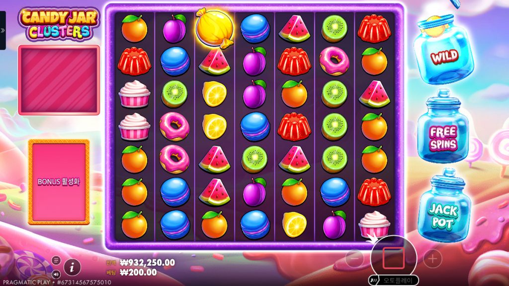 Pragmatic Play의 CANDY JAR CLUSTERS 는 달콤한 사탕과 디저트 테마를 배경으로 펼쳐지는 클러스터 방식 슬롯입니다. 다채로운 색감과 귀여운 디저트 심볼들이 화면을 가득 메우며, 마치 사탕 왕국 속에서 모험을 하는 듯한 기분을 선사합니다. 밝고 유쾌한 배경음악은 게임의 몰입감을 더해주고, 랜덤 멀티플라이어와 무료 스핀 기능은 언제 어디서든 대형 배당의 기대감을 안겨줍니다. 단순히 귀여운 테마를 넘어 전략적 플레이와 높은 변동성을 동시에 제공하는 게임으로, 초보자부터 숙련자까지 모두에게 색다른 재미를 전달합니다.