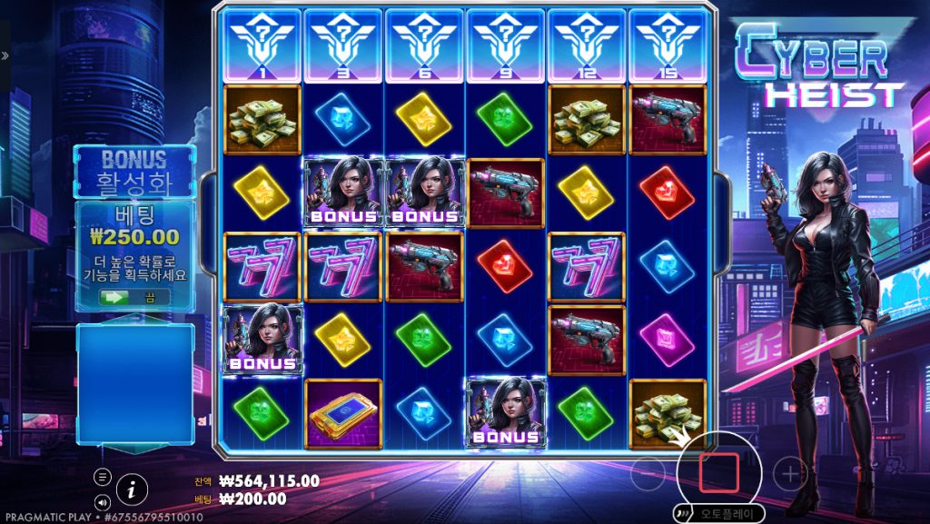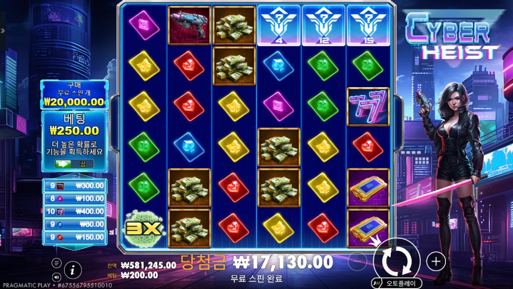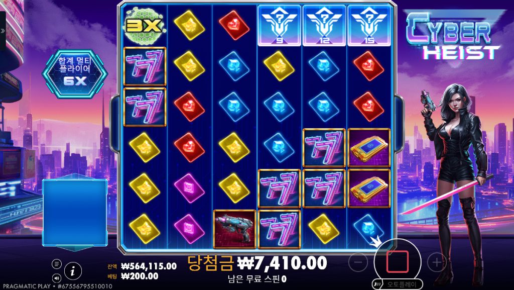 Pragmatic Play의 CYBER HEIST 는 사이버펑크 세계관을 배경으로 한 하이테크 슬롯 게임으로, 네온 불빛이 반짝이는 미래 도시에서 범죄와 액션이 교차하는 긴장감을 느낄 수 있습니다. 총기를 든 여전사가 등장하는 인트로 화면과 강렬한 전자 음악은 플레이어를 영화 같은 장면 속으로 끌어들입니다. 기본 스핀부터 텀블 기능, 그리고 보너스 라운드까지 이어지는 흐름은 단순한 슬롯 이상의 박진감을 제공하며, 특히 멀티플라이어가 결합될 때의 폭발력은 강렬한 몰입을 유도합니다. CYBER HEIST는 단순히 릴을 돌리는 즐거움이 아닌, 미래 도시에 몸을 던진 범죄 액션의 체험과도 같은 독창적인 경험을 선사합니다.